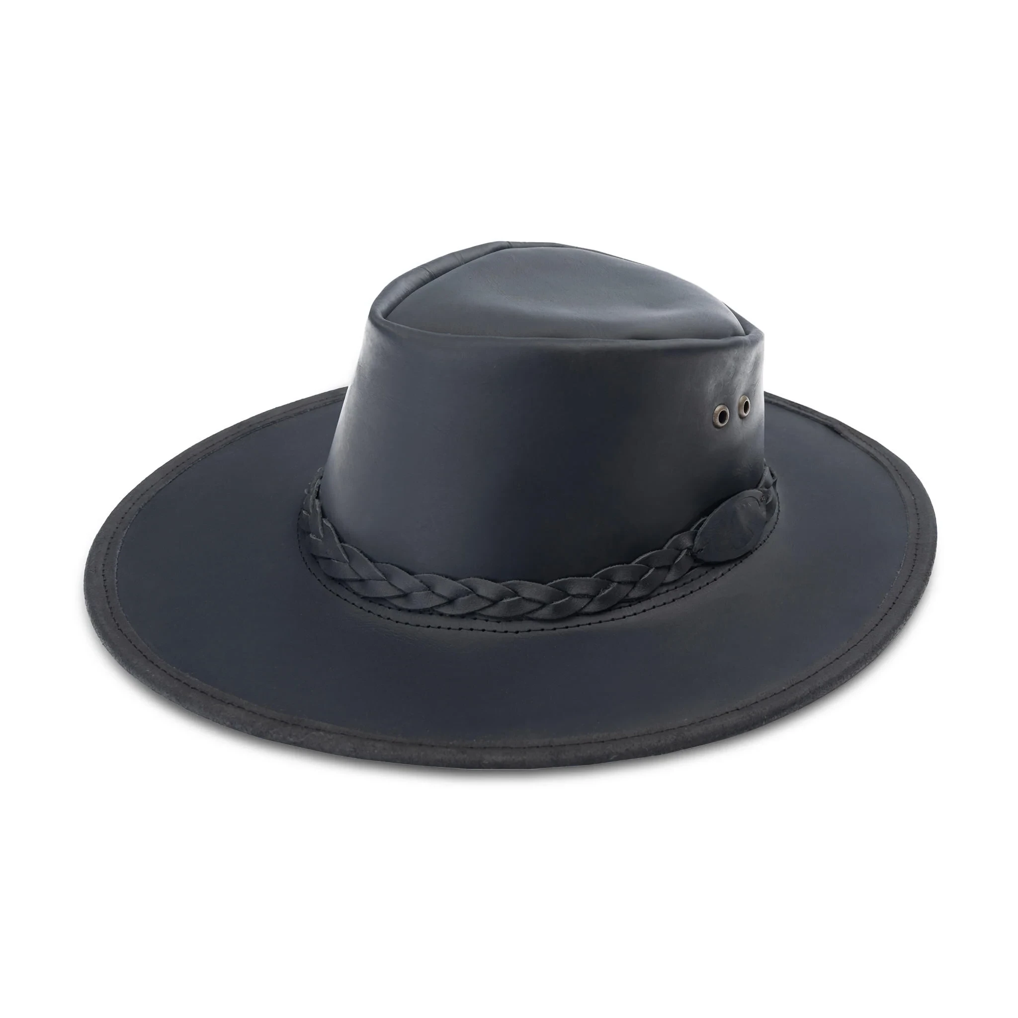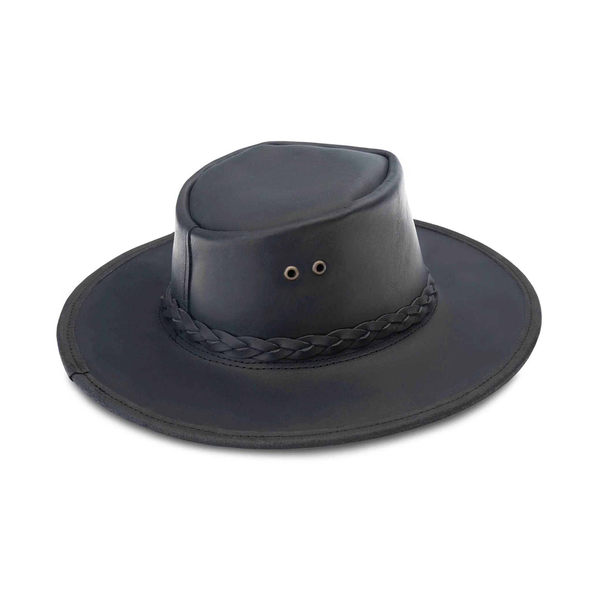 The black full-grain leather fedora represents the highest quality in leather craftsmanship. Made from the most durable part of the hide, it guarantees long-lasting wear while maintaining a refined appearance.