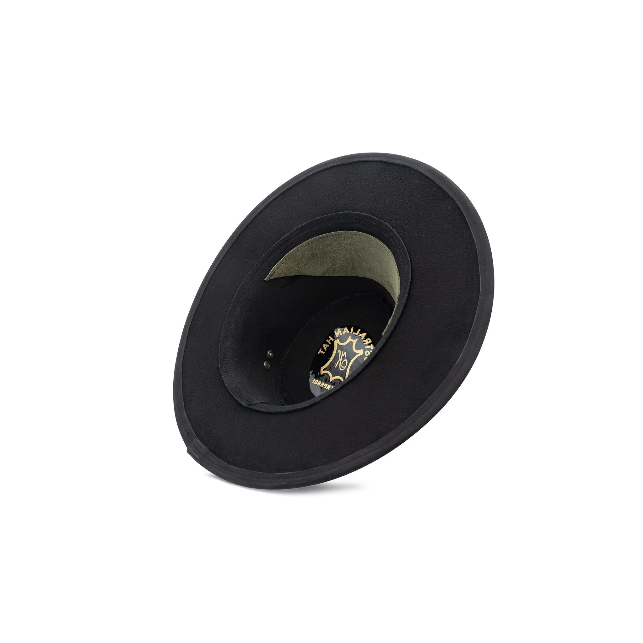 The black leather fedora is a wardrobe essential that blends elegance and practicality. Crafted from genuine leather, it’s both durable and stylish, suitable for daily use or special occasions.