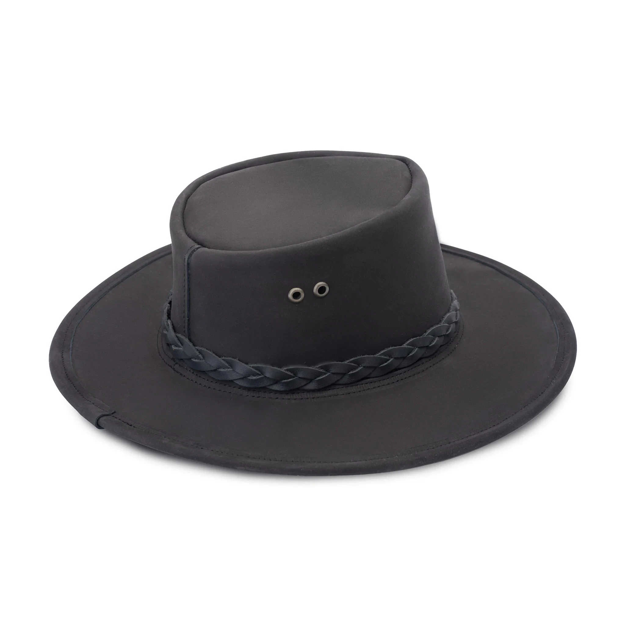 Complete your look with a timeless fedora that embodies classic leather craftsmanship.