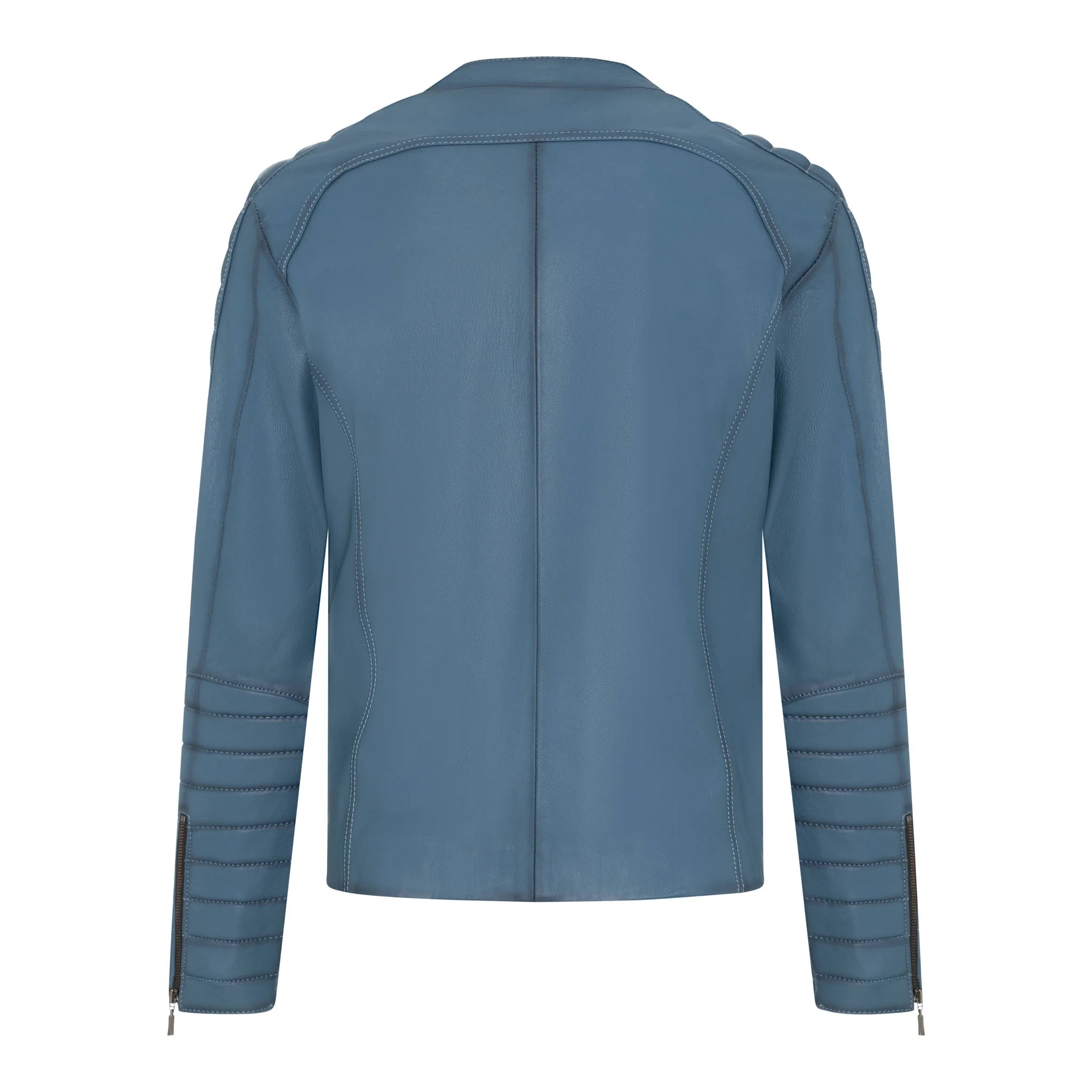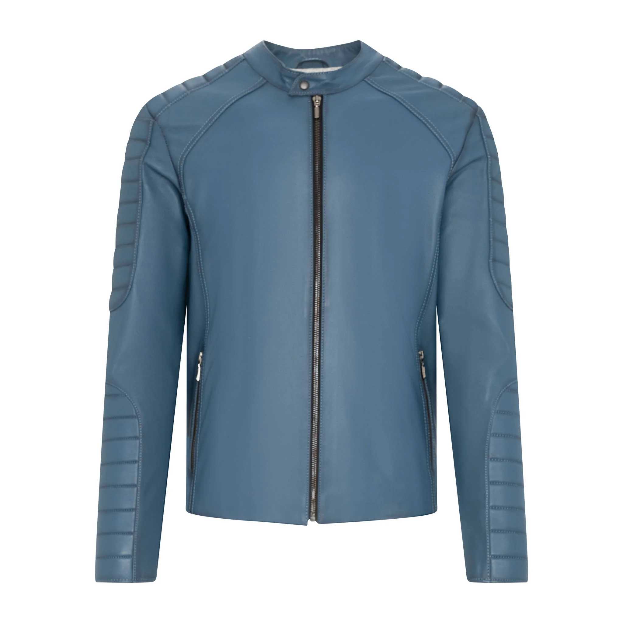 Order now and enjoy the refined style of a genuine leather jacket in an exceptional blue tone.