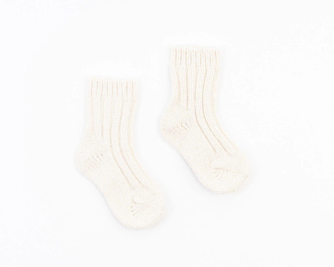 The children’s white Merino socks are made with soft wool fibers that keep little feet warm and comfortable.