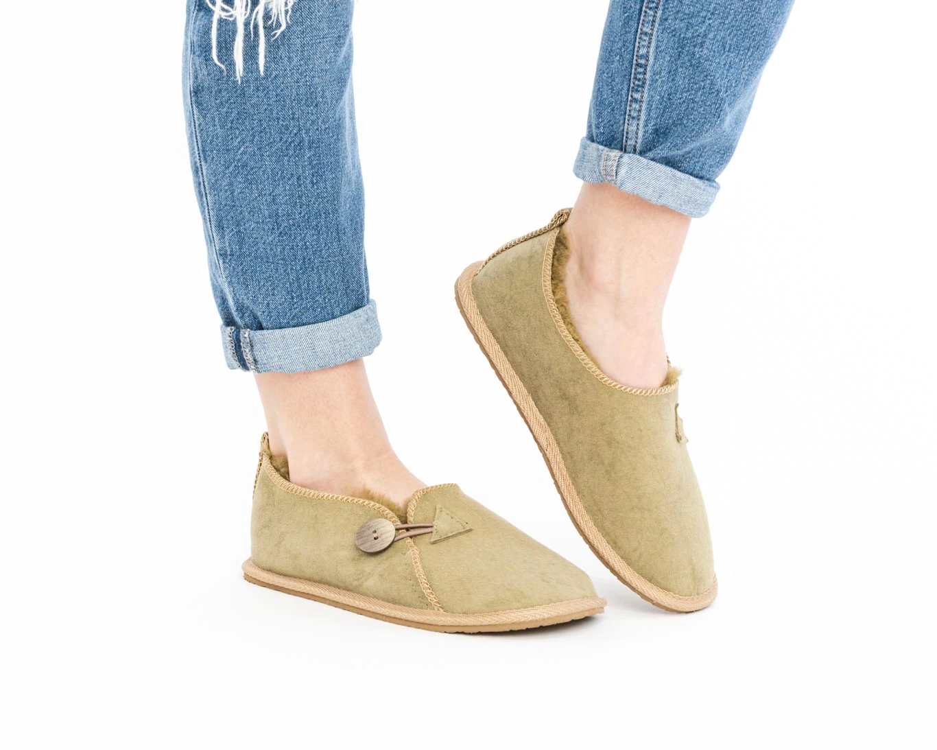 Enjoy everyday comfort and stability with these olive slippers.