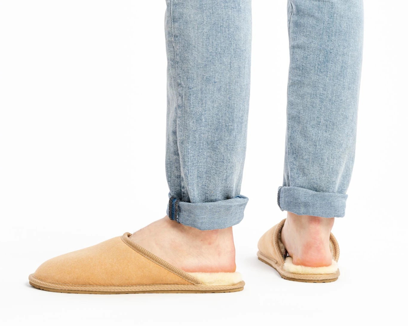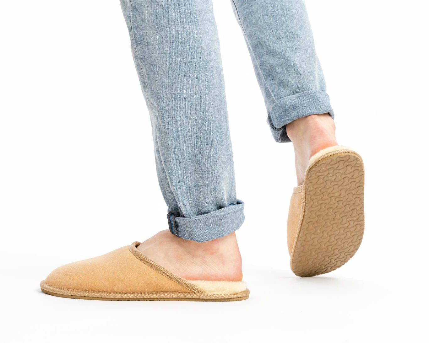 The men’s insulated leather slippers combine genuine leather durability with a soft wool lining, ensuring warmth and comfort on cold days.