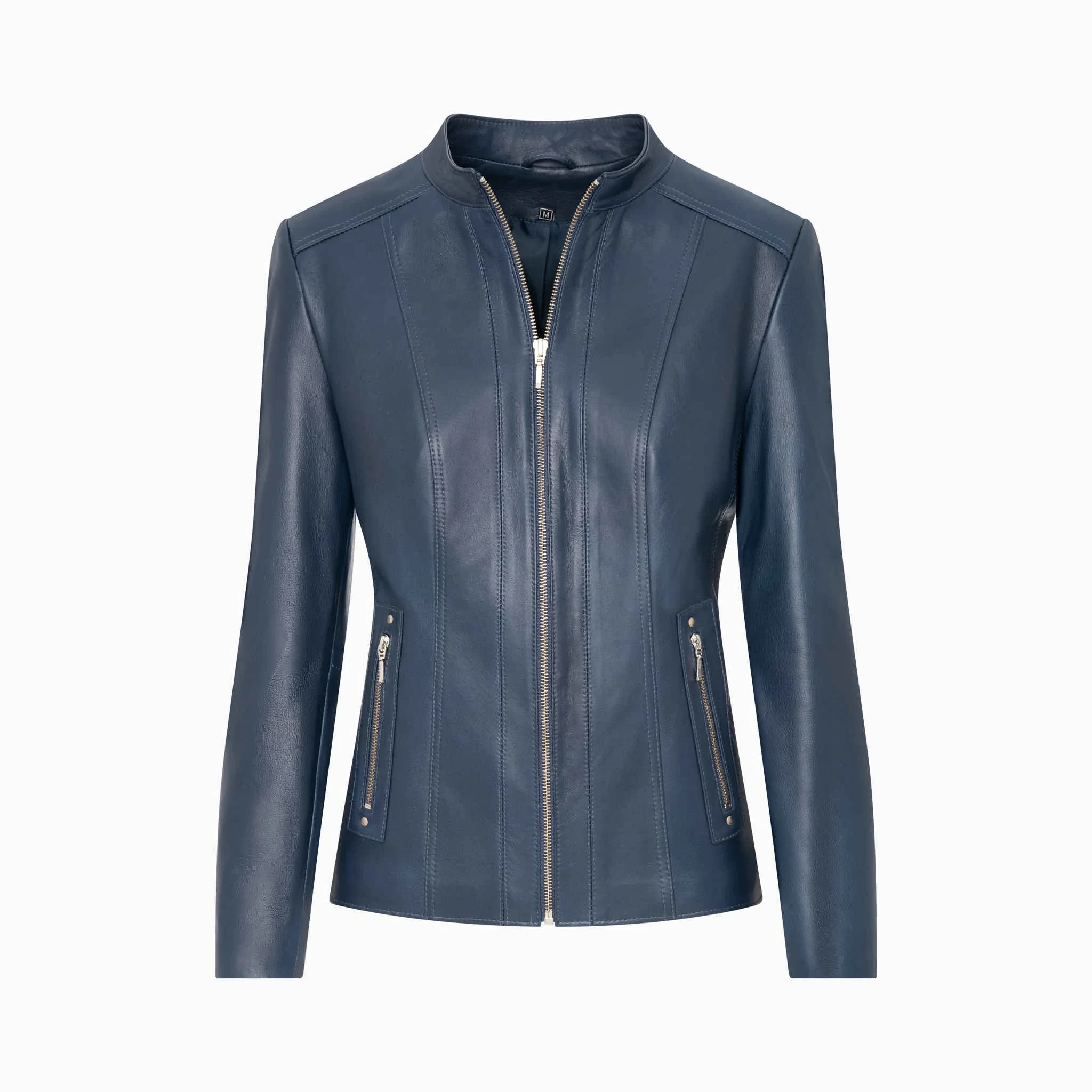Navy Blue Women’s Leather Jacket – Dora