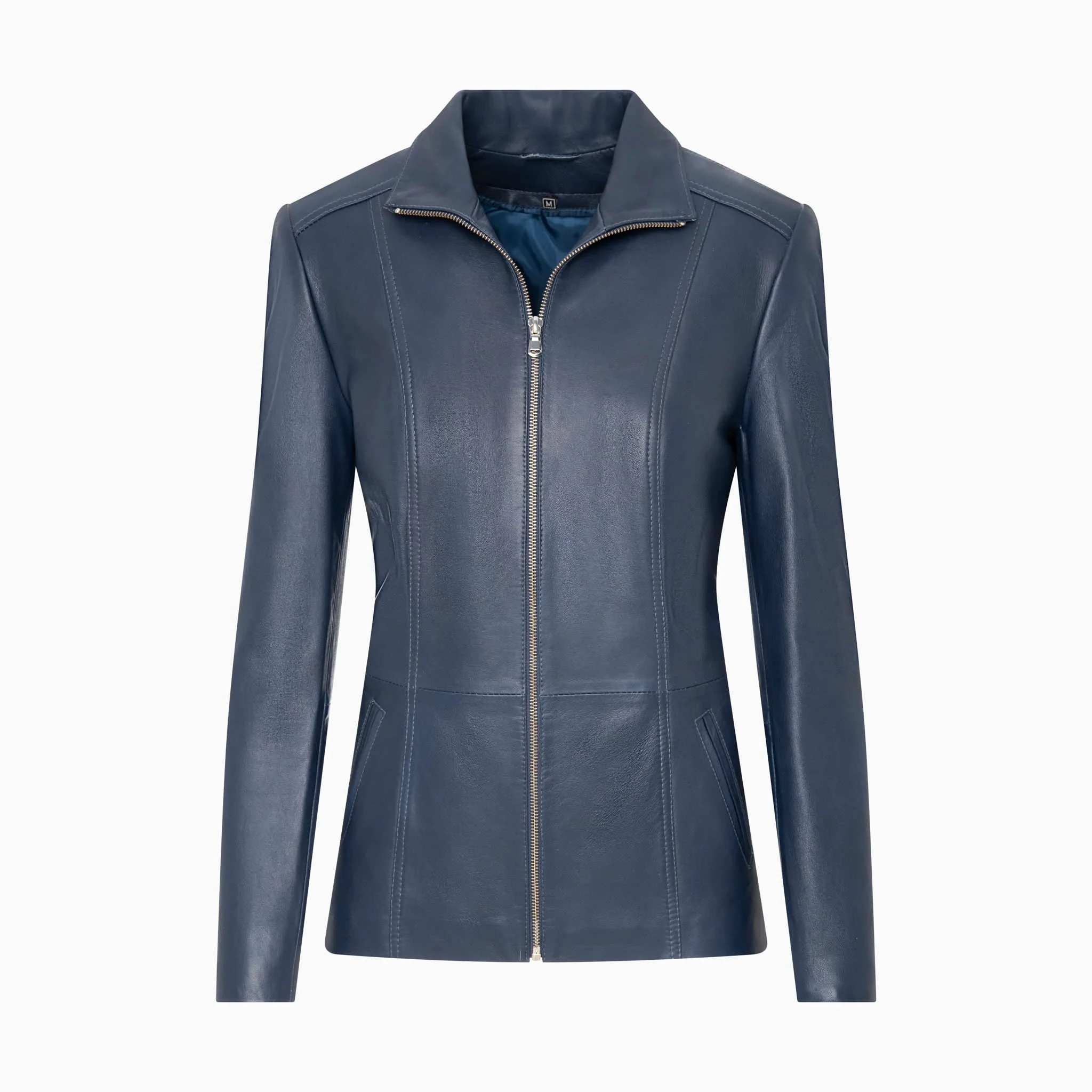 1 review for Navy Blue Women’s Leather Jacket – Zuza