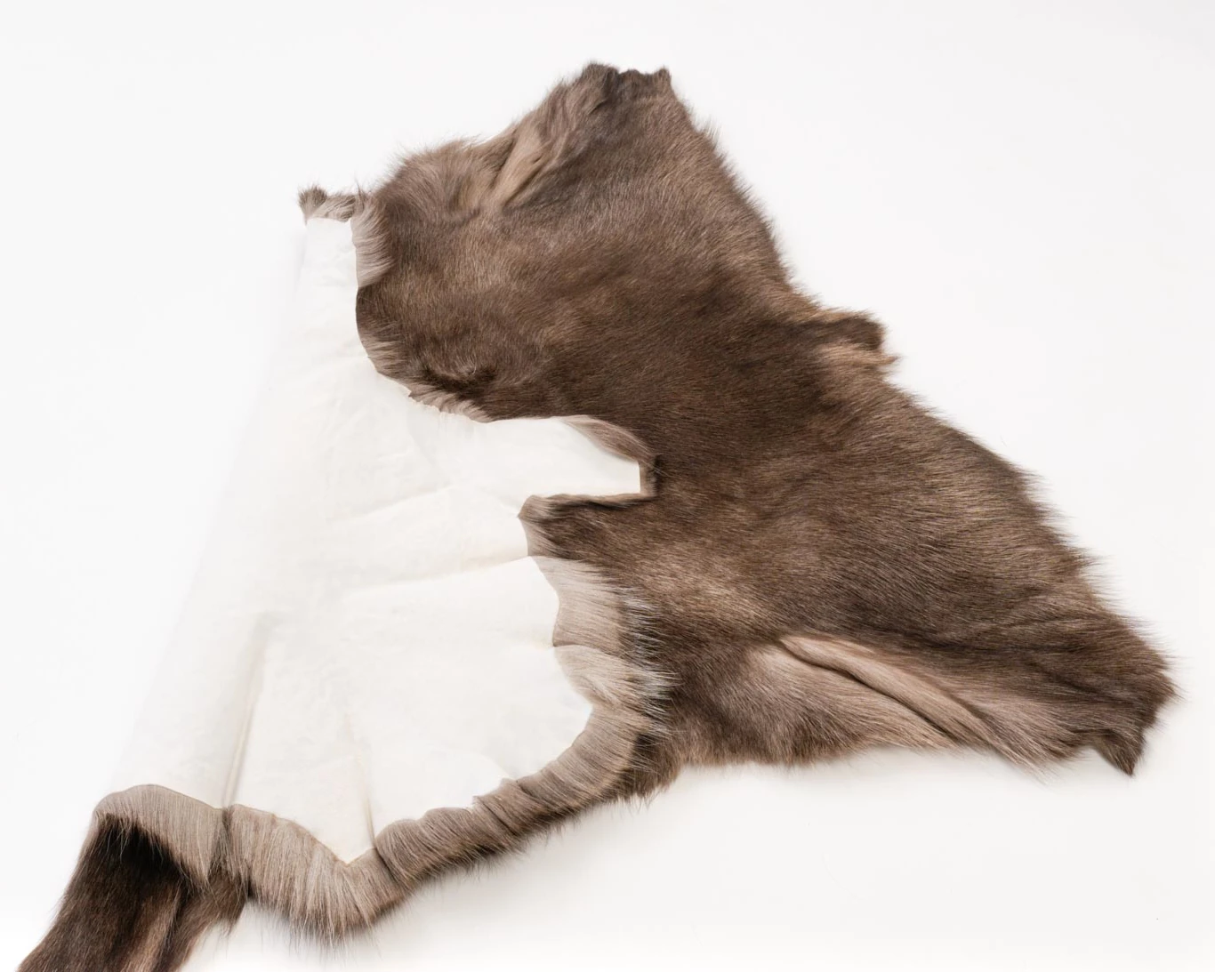 Perfect for Scandinavian interiors, cabins, or modern spaces seeking natural texture. Reindeer hide adds both visual depth and cozy atmosphere, enhancing any living room or bedroom with authentic charm.