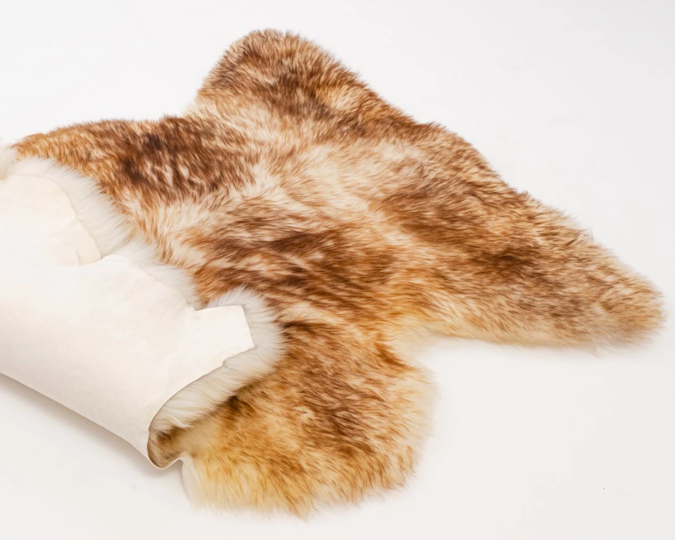 The golden-brown sheepskin rug adds a warm, earthy tone to your space while offering the softness of natural wool.