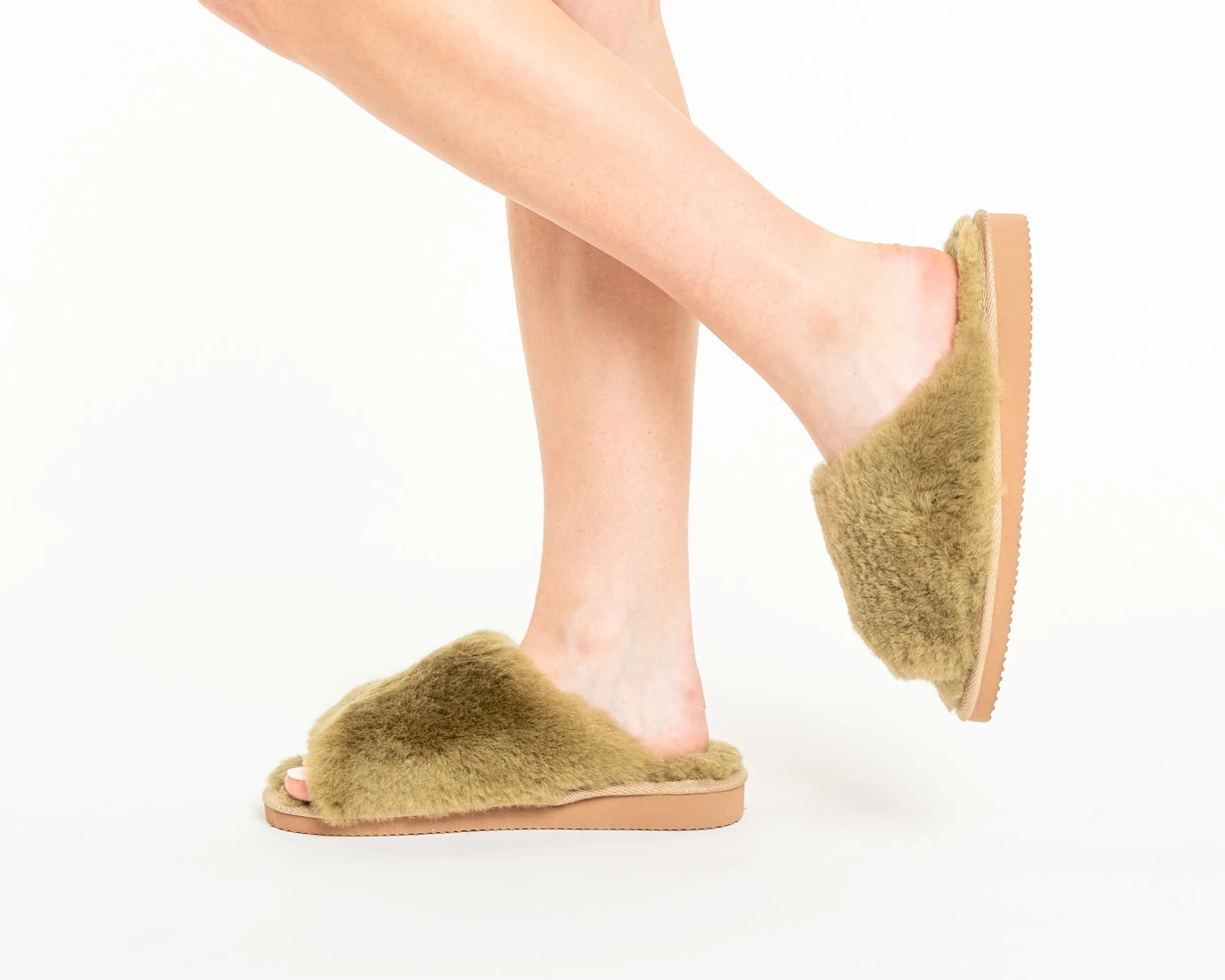 The olive warm ladies’ slippers bring comfort and warmth with their plush interior and lightweight build.