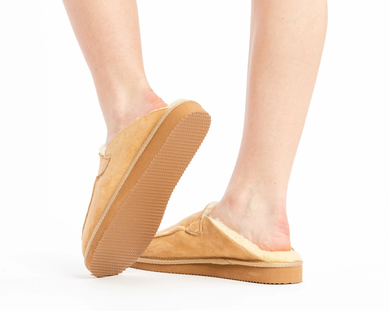 Beige Sheepskin Moccasin Slippers – Cozy Home Style