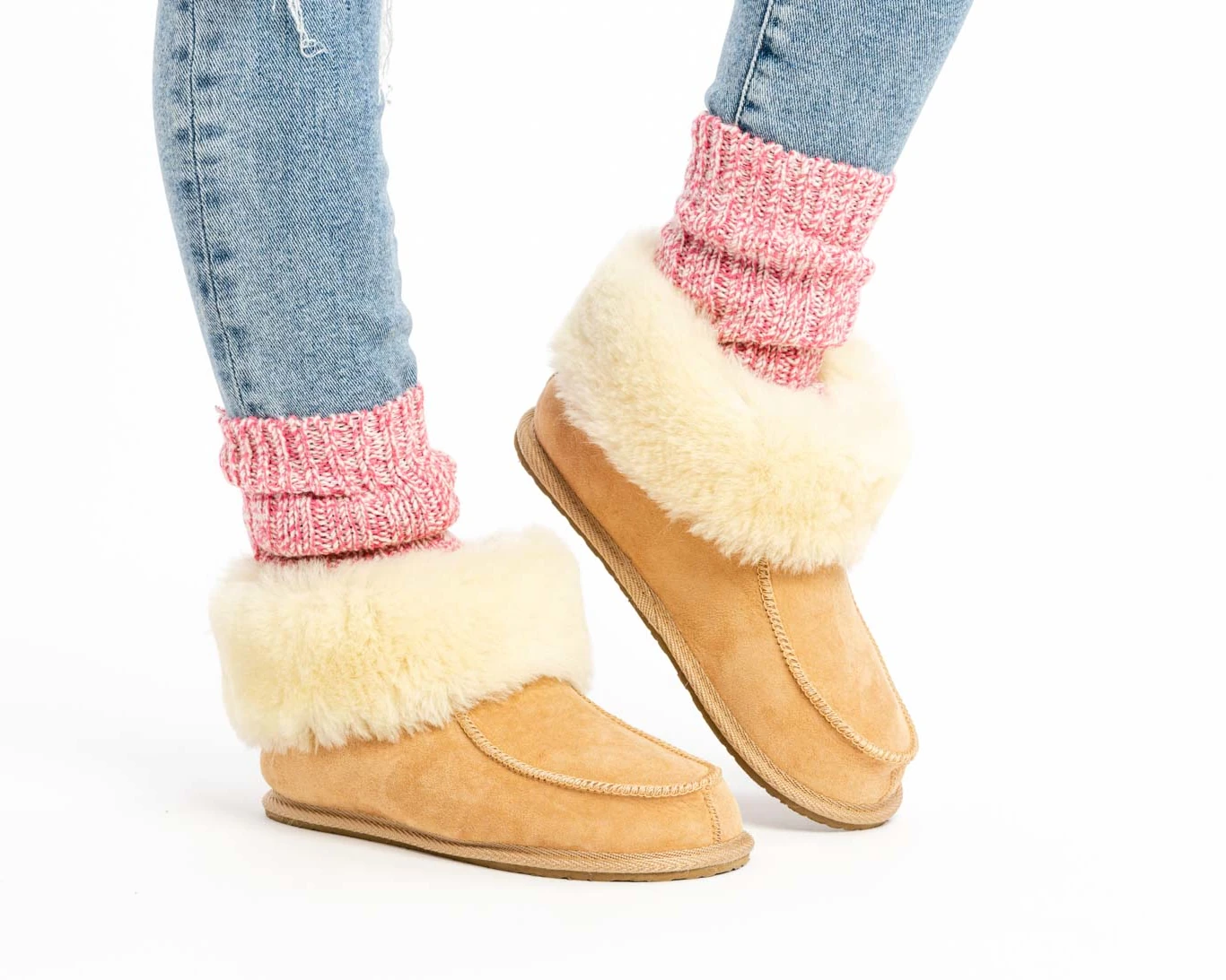 The insulated sheepskin slippers provide maximum protection against the cold. With their dense wool lining, they keep feet warm and comfortable even on frosty mornings.