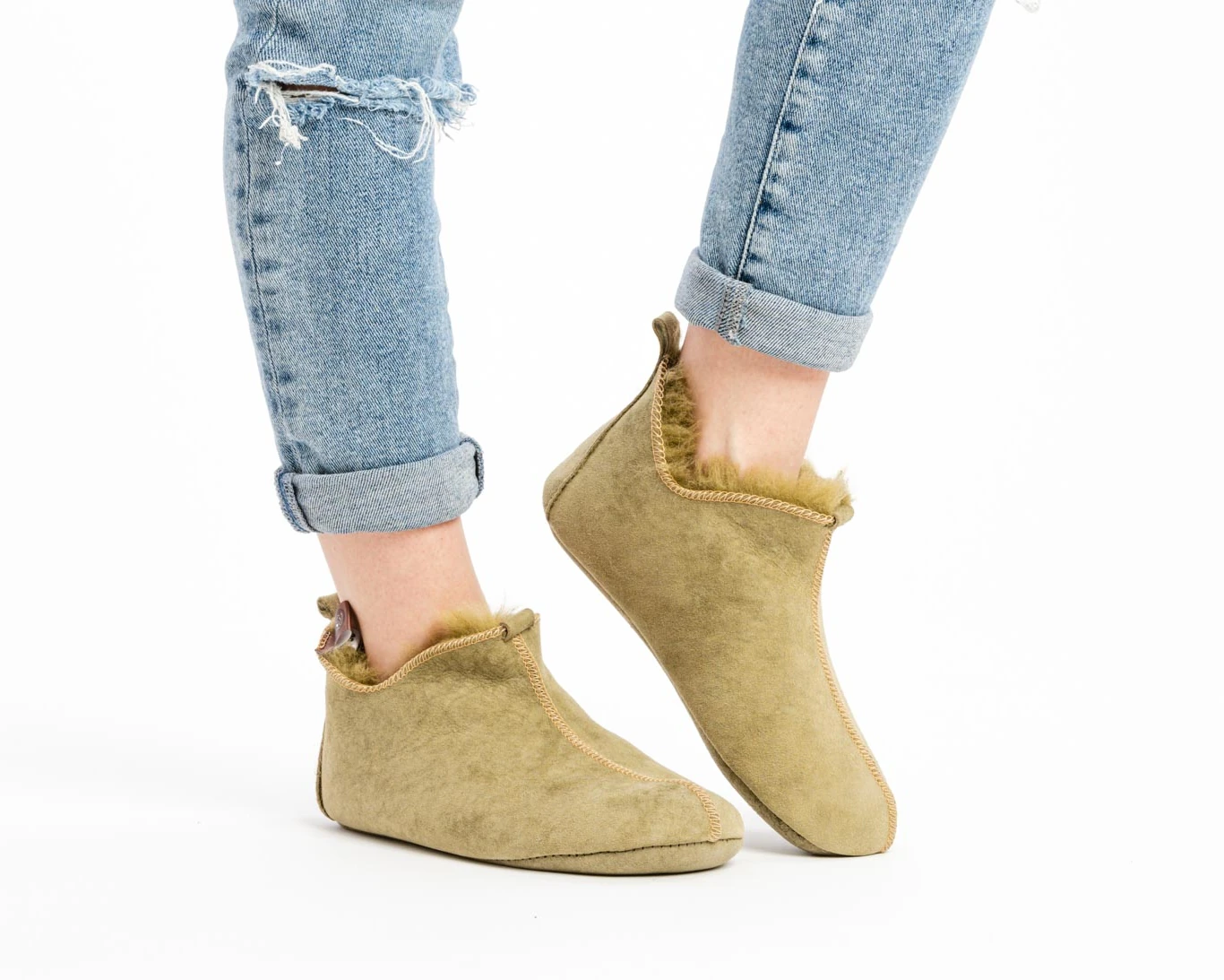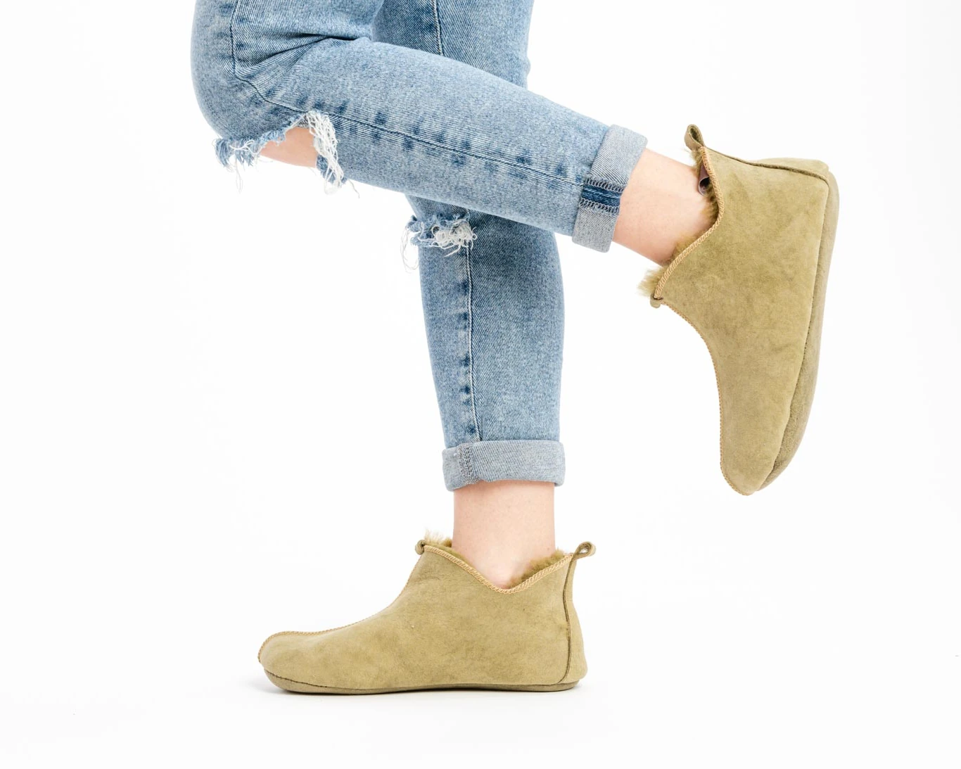 1 review for Split Leather Slippers – Olive – Wool Lining