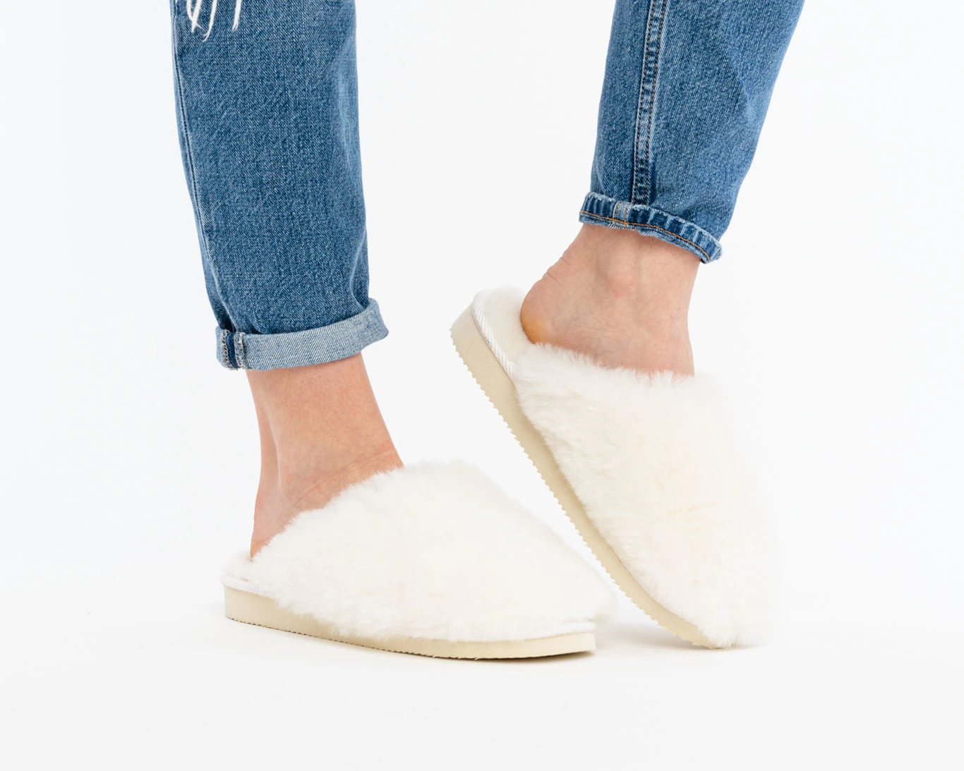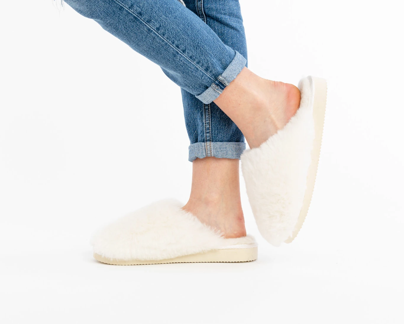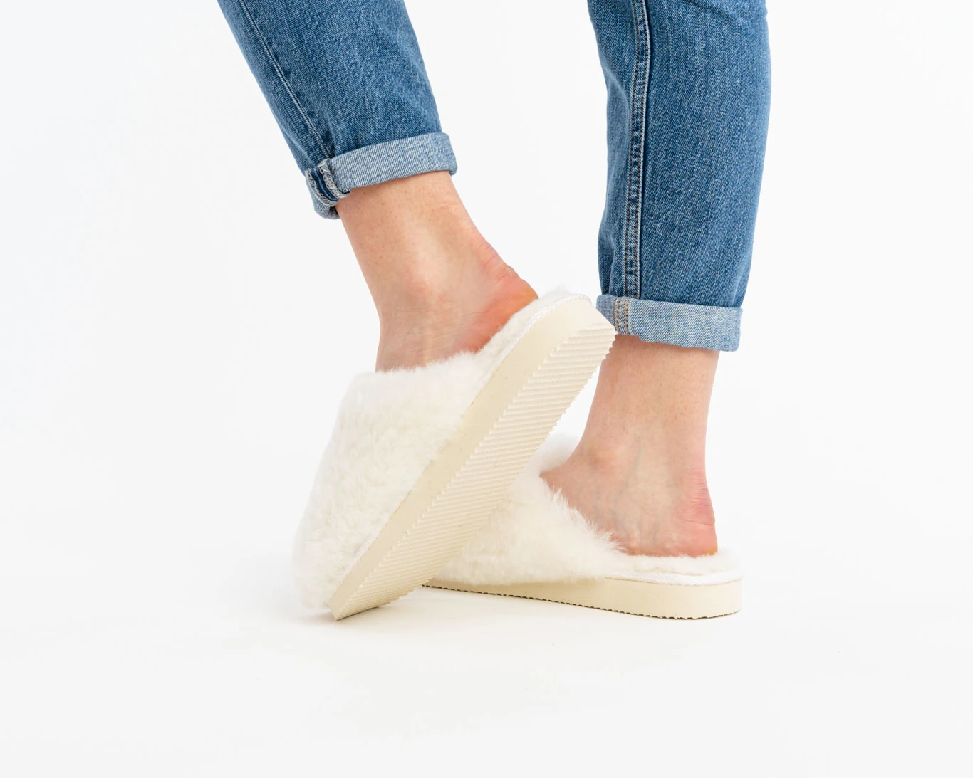 These white insulated women’s slippers are designed for colder days, with a plush lining that keeps feet cozy and warm.